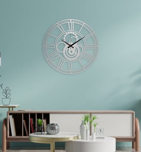Geef uw kamer een unieke twist met onze Zilveren Gear Oversize Klok met 3D-effect!