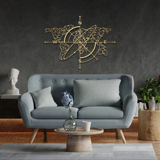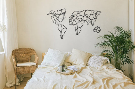 Prachtige handgemaakte metalen gezichten wereldkaart voor aan de muur