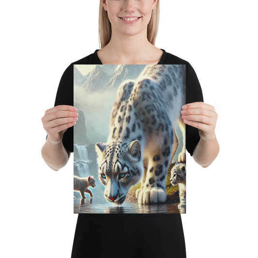 Premium Canvasprint van een Sneeuwluipaard - Hoge Kwaliteit, Handgemaakt op Massief Houten Frame - Verschillende Formaten