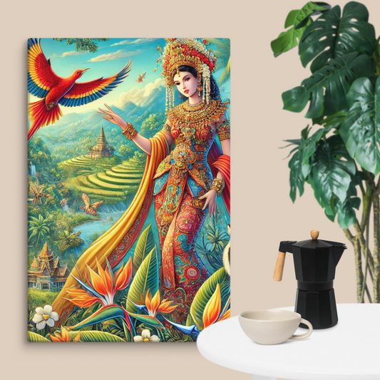 Prachtige Canvas Wanddecoratie - Kleurrijke Indonesische Scene met Dieren en Natuur