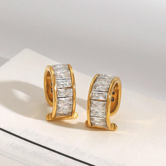 18 karaat Goud vergulde Strass Oorbellen – Waterdicht & Hypoallergeen | Luxe Vierhoekige Damesoorbellen