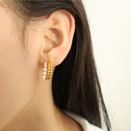 Retro 18 karaat Goud vergulde Oorringen met Imitatieparels – Dames Hoepeloorbellen | Klassiek en Elegant Design