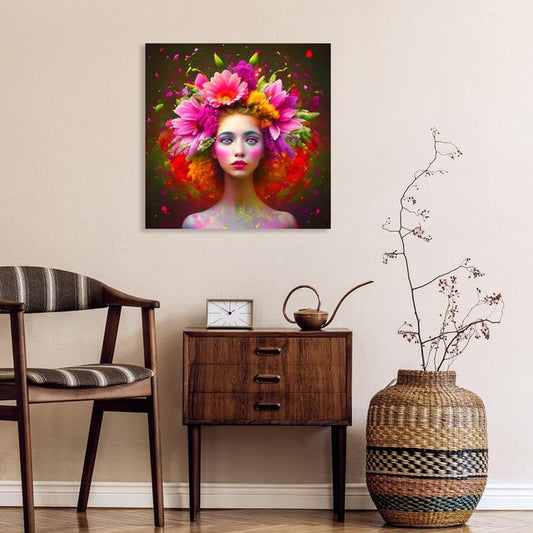 Prachtige Acrylglas Schilderij “Flower Woman I” – Vrouw met Bloemen in Haar