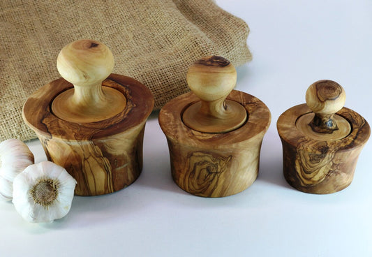 AusverkauftNatuurlijke olijfhouten knoflook pers