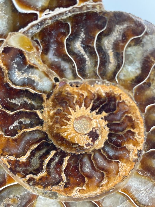 Marvel at the Stunning Natural Beauty Each half-cut ammonite reveals the stunning beauty of Mother Nature. The beautiful spiral structures and unique patterns take you back to an era when these creatures inhabited the oceans. Be fascinated by the inimitable details and admire the timeless beauty hidden in every millimeter.