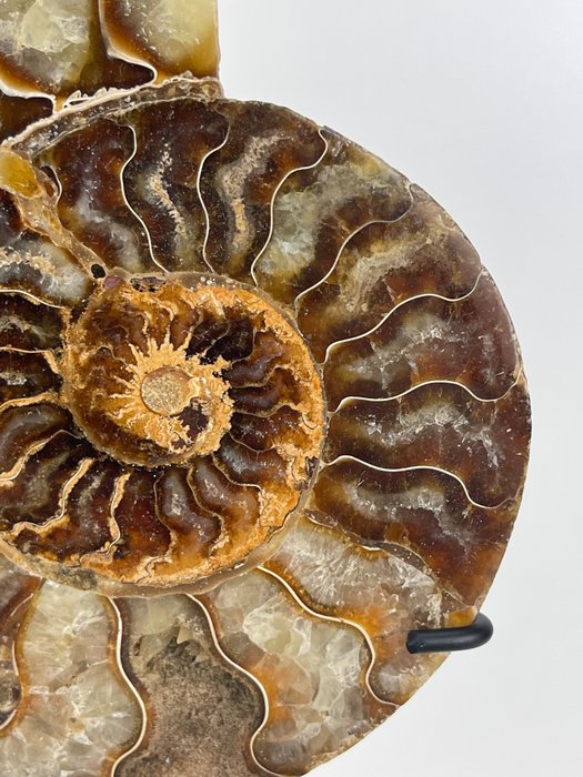 Discover the Mesmerizing Beauty of Our Half Cut Ammonite on Custom Stand - Don't Miss Out on This Unique Art Object! 💎